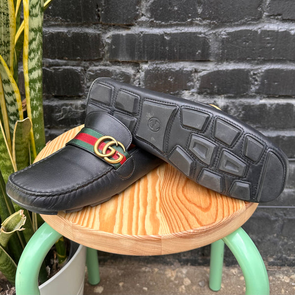 These are square toe driving shoes, as evidenced by the rubber and leather soles, but can be worn as, and are otherwise indistinguishable, from a classic loafer.
