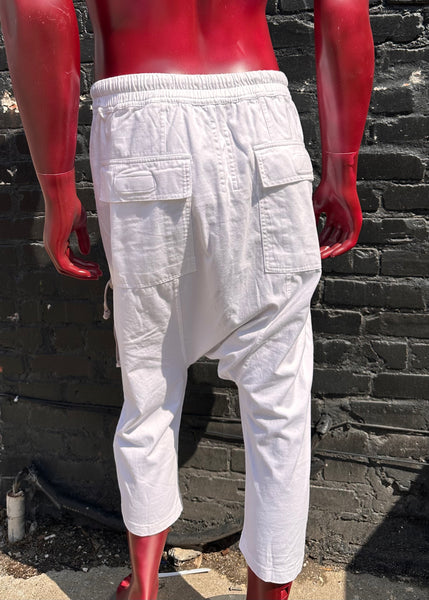 White drop-crotch Rick Owens pant. Button fly. From the spring/summer ‘21 collection.