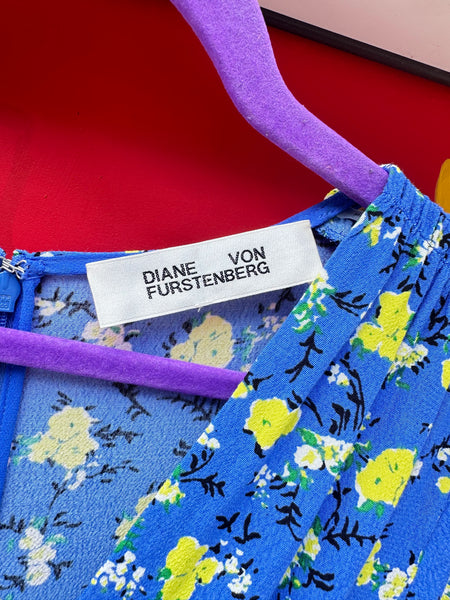This stunning cobalt blue Diane Von Furstenberg dress is the perfect flowery piece for hot summer days 🌼🌺 Ruched sleeves provide a unique shape for this flowy dress that is sure to turn heads ✨