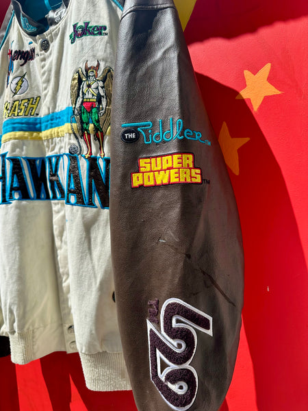 Superheroes š¤ Racing Jackets - the collab we didnāt know we needed. This Hawkman Jacket is a dream find! Features include a cream colored canvas base, brown leather sleeves, DC embroidered iconography andĀ a pop of blue and yellow detailing to top it off āØ